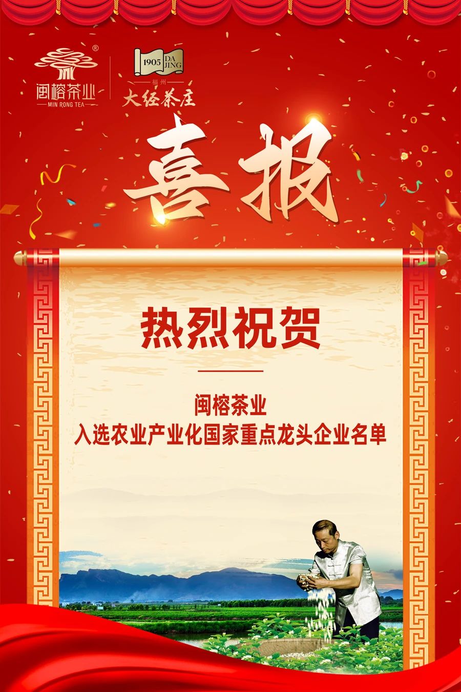 喜报!闽榕茶业再次入选农业产业化国家重点龙头企业名单